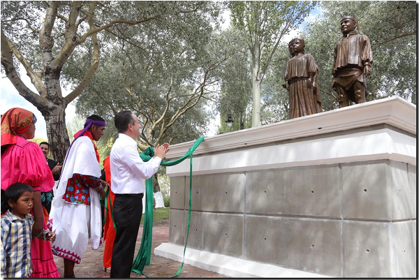 GUACHOCHI.- Lorena Ramírez, la corredora rarámuri que ha llevado el nombre de esta comunidad a diversas partes del mundo, cuenta ya con su estatua conmemorativa.