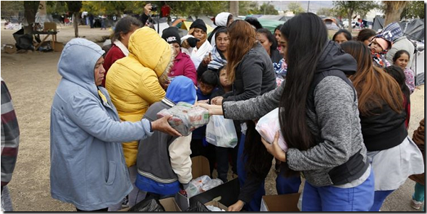 Familias migrantes que se encuentran desde hace varias semanas acampando en el parque de El Chamizal recibieron un donativo de pañales y artículos de higiene personal que fueron donados por estudiantes, docentes y personal administrativo del Instituto de Ciencias Sociales y Administración.
