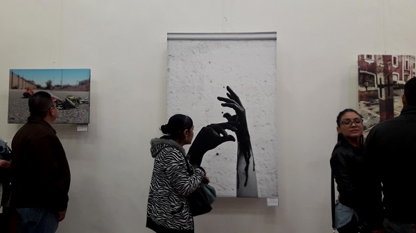 La muestra, que consistió en cientos de fotografías en variados tamaños (incluyendo gran formato), tuvo en esta ocasión la característica de contar con un montaje tipo instalación, destacadamente un camino de cruces rosas con pétalos de rosas rojas, así como una representación del desierto de la región.