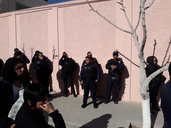 A la manifestación de protesta y exigencia de justicia -que se dijo sería la primera de muchas y por lo pronto este lunes 20 ante la Fiscalía de la Mujer- asistieron colectivos y particulares poco antes del mediodía de este domingo, encontrándose con un Monumento a Juárez blindado por la Policía Municipal (con al menos medio centenar de elementos y una veintena de patrullas) supuestamente en previsión de actos vandálicos, y manteniéndose a la expectativa en grupos y tomando video con sus celulares.