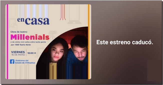 La obra a ser transmitida mediante video pregrabado en el Centro Cultural Paso del Norte, había sido publicitada como «estreno en Facebook» por la Subsecretaría de Cultura Norte, cuya titular Austria Galindo, aparecía entre los usuarios conectados al inicio.