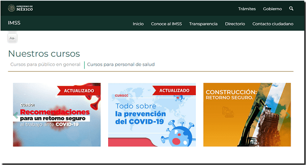 La mayoría de estos cursos están relacionados con la prevención del COVID-19 y recomendaciones para un retorno seguro, así como recomendaciones para el cuidado de adultos mayores ante la pandemia y el ABC de la obesidad.