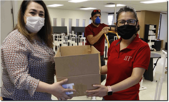 Con el inicio de actividades no presenciales el próximo lunes 27 de julio en la Universidad Autónoma de Ciudad Juárez (UACJ), la Dirección General de Servicios Administrativos hizo entrega, en sus oficinas de Rectoría, de material a los cinco institutos y a las tres unidades multidisciplinarias, así como a otras áreas, para atender las medidas de prevención contra el COVID-19 entre la comunidad estudiantil, administrativa y manual.
