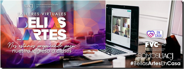 La Jefatura de Bellas Artes, a través de la Subdirección de Formación y Vinculación Cultural de la Universidad Autónoma de Ciudad Juárez (UACJ), invita a la comunidad a inscribirse en los talleres de Bellas Artes que continuarán en modalidad virtual y se impartirán a partir del 7 de septiembre. Música, danza, artes plásticas, fotografía, apreciación cinematográfica, teatro y teoría del arte, son las disciplinas que oferta la UACJ en modalidad taller para niños y niñas, adolescentes y adultos en una variedad de días y horarios.