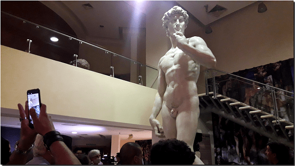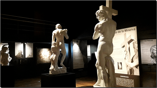 La Sala Experimental Octavio Trías y su vestíbulo albergan las obras, destacadamente el monumental David. Asimismo hay algunas figuras que recrean al artista florentino en las diversas etapas de su vida, entre ellas trabajando en la Capilla Sixtina.