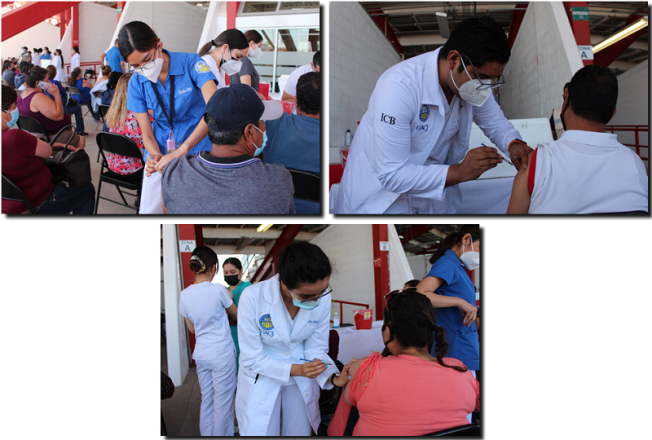 De los seis puntos establecidos para llevar a cabo la inoculación, 20 alumnos apoyarán en la Universidad Tecnológica de Ciudad Juárez, 100 en el noveno regimiento de caballería motorizada y 250 estarán ubicados en el Estadio de Béisbol Juárez Vive, informó la maestra Belén García, coordinadora de los brigadistas de la UACJ.