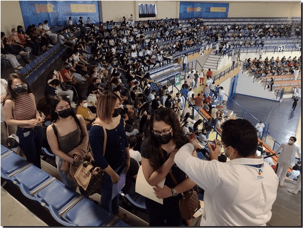La campaña de vacunacion en el Gimnasio Universitario se realiza en forma paralela a la aplicación de la vacuna a la población general de Ciudad Juárez, de acuerdo a su rango de edad dispuesto por la Secretaría de Salud y Bienestar.