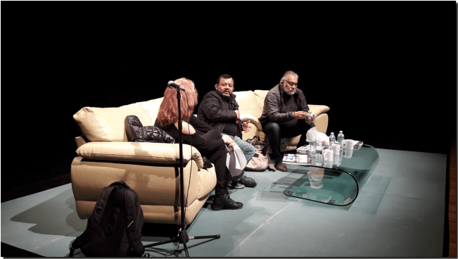 Como preámbulo, acompañado por Silverio Palacios, el actor tuvo un acercamiento con el público fronterizo en un conversatorio la tarde del jueves en la Sala Experimental Octavio Trías, donde habría la oportunidad de que ambos contestaran preguntas previamente enviadas por los fans en el registro de asistencia.