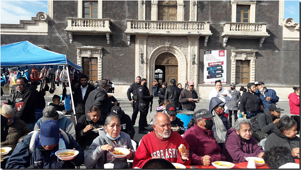 Cientos de juarenses -adultos mayores, casi todos- fueron invitados a un singular festejo navideño en la Plaza del Fundador, a espaldas de Catedral.