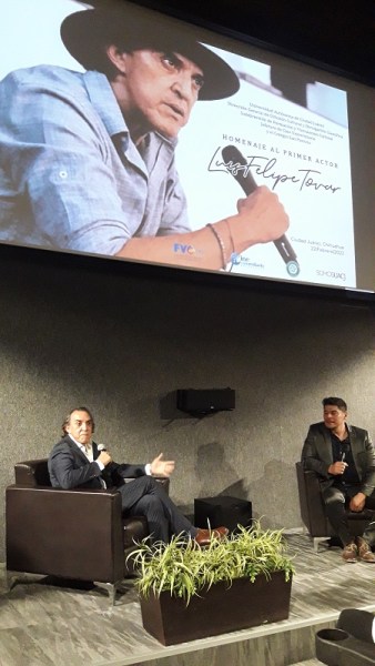 Tovar se encuentra en Ciudad Juárez con «El Set», su escuela de formación actoral, para trabajar en el Colegio San Patricio durante la presente semana. Se dio un tiempito para una plática a la que se añadió una «sorpresa» (según los organizadores) en forma de homenaje y entrega de una placa metálica de reconocimiento a su trayectoria de 42 años.