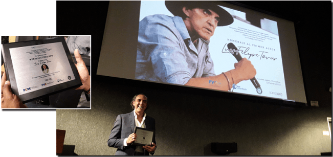 Al hacer uso del micrófono, Luis Felipe agradeció el gesto de cariño de la comunidad universitaria al realizarle este homenaje, y a la vez aprovechó para hablar de sus últimos proyectos fílmicos y de series televisivas, así como de su escuela de formación actoral.