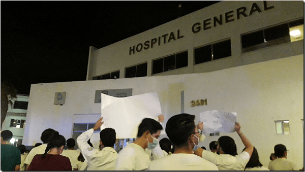 Al grito de «¡Ni un pasante más!… ¡Ni una bata menos! y «¡Los muertos no dan consulta!» se llevó a cabo este miércoles una marcha con la exigencia de Servicio Social Seguro como reacción a los asesinatos de médicos a plazas que presentan la problemática de violencia.