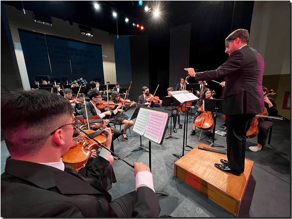Elementos de la música de ayer, de hoy y de siempre fueron combinados en la ejecución de Poperoso y Rockeroso, a cargo de la Orquesta Sinfónica Juvenil de la UACJ como penúltimo concierto de la temporada 2022 en el Teatro Gracia Pasquel.