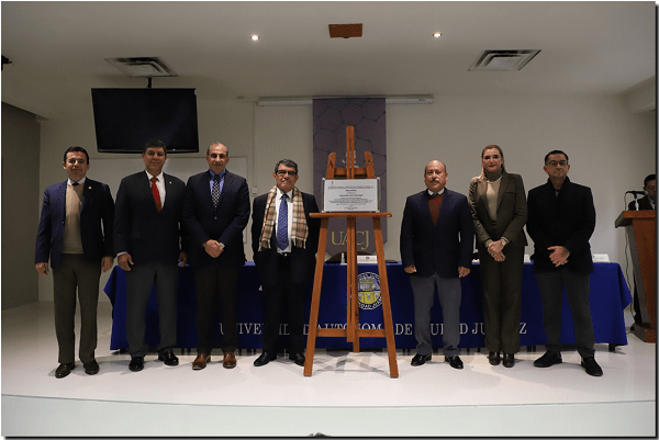 La develación de esta placa estuvo a cargo del doctor Eduardo Zarza Meza, presidente del CACEB, quien destacó que la UACJ fue la primera institución a nivel nacional en recibir esta distinción en 2006, y ahora celebra su tercera reacreditación con vigencia de cinco años.
