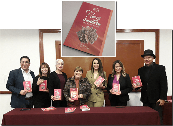 Otras juarenses destacadas en diversos ámbitos (cultural, social, etc.), también aportaron sus historias en esta obra editorial impulsada por Sandy García, fundadora de Esencia de Mujer. La portada muestra una rosa (o flor) del desierto chihuahuense.