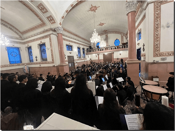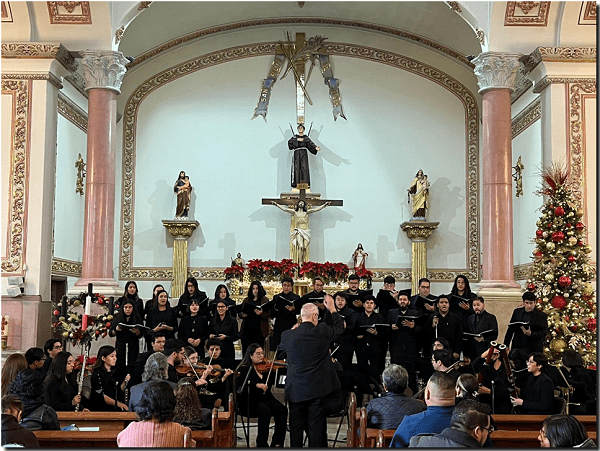 Arropados por la comunidad de la Parroquia San Felipe de Jesús, artistas en formación del Programa de Música de la UACJ dieron vida a una de las más importantes obras sinfónico-corales proveniente del Barroco.