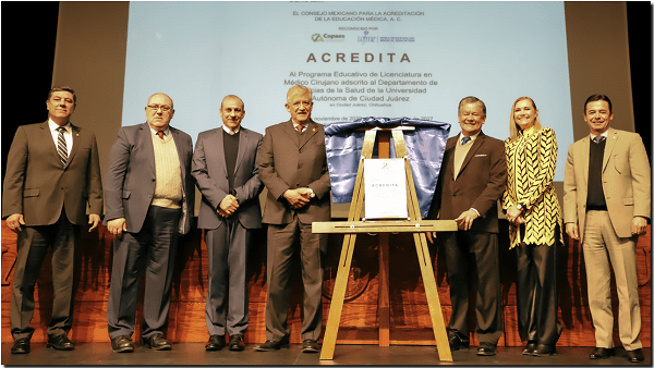 El Consejo Mexicano de la Acreditación de la Educación Médica A.C. (COMAEM), organismo de carácter mundial avalado por el Consejo de Acreditación de la Educación Superior (COPAES), la Red Iberoamericana para el Aseguramiento de la Calidad en la Educación Superior (RIACES), la World Federation for Medical Education y The National Committee on Foreign Medical Education and Accreditation (NCFMEA), entregó el 16 de febrero este reconocimiento.