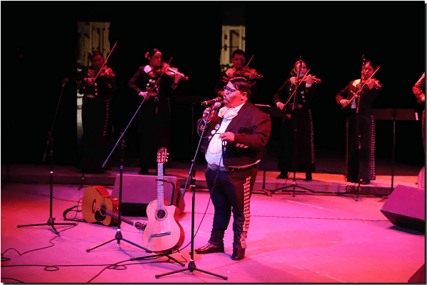 El Teatro Víctor Hugo Rascón Banda del Centro Cultural Paso del Norte lució completamente lleno esta tarde, tras el festejo por adelantado del Día de las Madres que se celebrará este 10 de mayo y en el que participaron el Mariachi Universitario Canto a mi Tierra y el Mariachi Juvenil UACJ, bajo la dirección del maestro Jaime Mata.