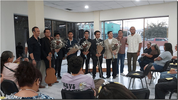 Entre el público se encontraba otro destacado egresado de la especialidad, Daniel Monroy, de quien se indicó acaba de concluir su Maestría en Guitarra en una universidad estadounidense.