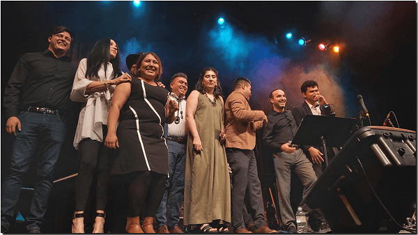Al concluir, todos los artistas se presentaron juntos en el escenario para agradecer el público y tomarse una foto grupal.