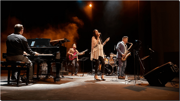 Luego vendría Juarez Jazz Collective para acompañar a Elizabeth Meza en la voz, y Abel Mireles en el sax (y también la flauta transversal). También Danni Iglesias al piano, Álvaro Mireles en el bajo y Ángel Jiménez en la batería.
