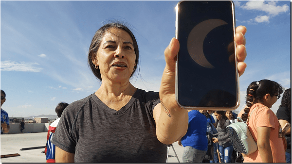 Fueron cientos de personas de todas las edades, que respondieron a la convocatoria del Club de Astronomia UACJ para observar de manera segura el eclipse anular de Sol que aqui fue parcial al quedar oscurecido aproximadamente el 80 por ciento del astro.