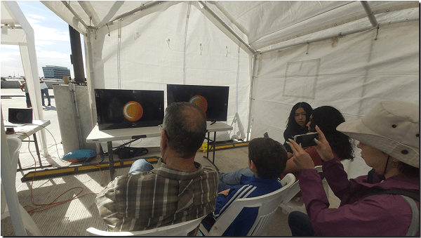 La sede de la sesion de observación fue lo alto del estacionamiento de niveles del IIT-IADA, a partir de las 9:00 de la mañana. Se contó con varios telescopios binoculares provistos de filtros, proyectores estenopeicos y lentes especiales que estuvieron a disposición del público de manera gratuita.
