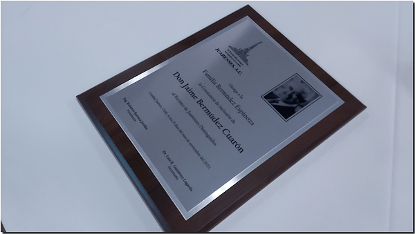 Se dio lectura a una semblanza del nuevo integrante del Recinto, previo a la develación de la placa conmemorativa a cargo de Sergio Bermúdez y del exgobernador Fernando Baeza, quien en la parte final dio un emotivo mensaje los tiempos políticos que le tocó vivir con don Jaime, fallecido en 2018 a la edad de 85 años.