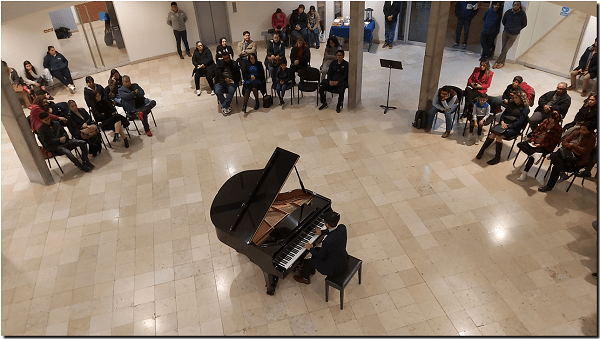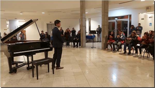El público reunido en el vestíbulo del CUDA tuvo la oportunidad de presenciar un auténtico torrente de notas musicales con obras como la Patética, de Beethoven y la Polonesa 26, de Chopin. Ambos, conjuntamente con Liszt, están entre los mayores virtuosos en la ejecución del piano, además de compositores universales.
