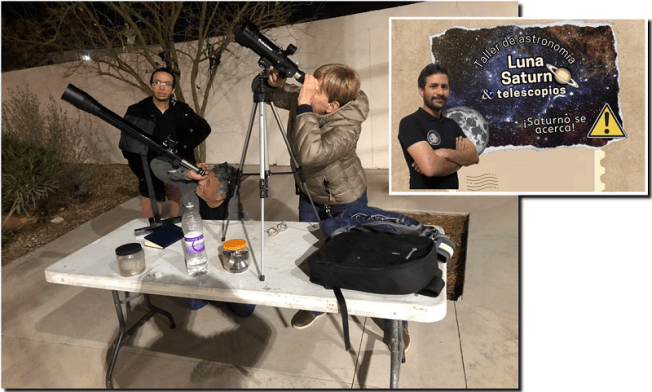 César Daniel Almada Gómez, egresado de la carrera de Ingeniería en Aeronáutica, de la Universidad Autónoma de Ciudad Juárez, invita a la comunidad a unirse a su taller de Astronomía “Luna, Saturno y telescopios”.