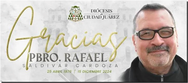 Torres Campos ponderó la entrega al servicio pastoral de Rafael Gutiérrez, desde su ordenación sacerdotal en 2007 siendo obispo Renato Ascencio León (actualmente ya finado).