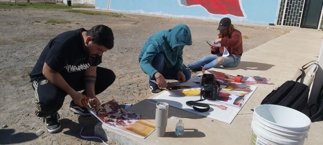 Fueron cinco horas de intenso trabajo al aire libre. La técnica utilizada fue el paste-up, que consiste en unir -como un rompecabezas- las partes del mural plasmadas en pliegos de papel ledger. En este caso fueron cerca de 80, provenientes de impresora láser full color.